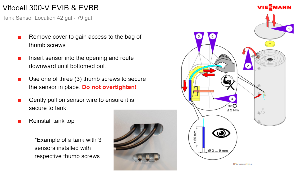 Viessmann EV1B Tank Sensor Mounting Scott Breimayer Jul 14, 2023 38 Here is a guide to where to mount the tank sensor on the new Viessmann water tanks.