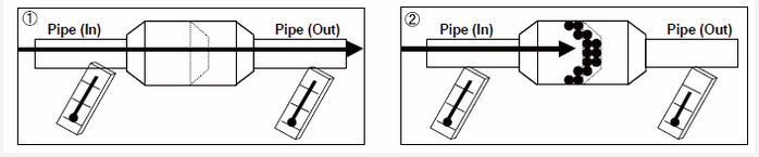 Conduct a strainer check to see if the strainer is clogged. The strainer does not have temperature difference between the inlet and outlet. If there is a temperature difference as shown in figure 2, there is a possibility the strainer is clogged and would need replacing.