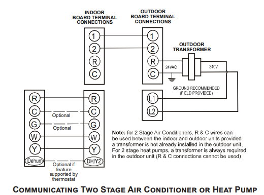 The Goodman line of communicating equipment no longer requires a special communicating control. The indoor and out door sections will communicate between themselves if wired correctly. Its is also possible to match non communicating equipment to communicating equipment, and achieve operation. This would be considered a "legacy" connection, or standard wiring. The number of wires available needed can change based on your set up. Here are a few examples.