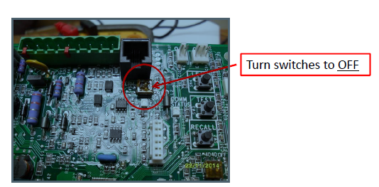• Bias switches on outdoor board need to be changed to “off” from the factory