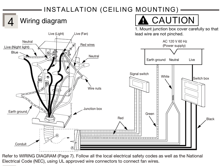 A separate 2-conductor wire will be needed to another switch for control of low / high speed fans. DO NOT CONNECT 120v to these wires.