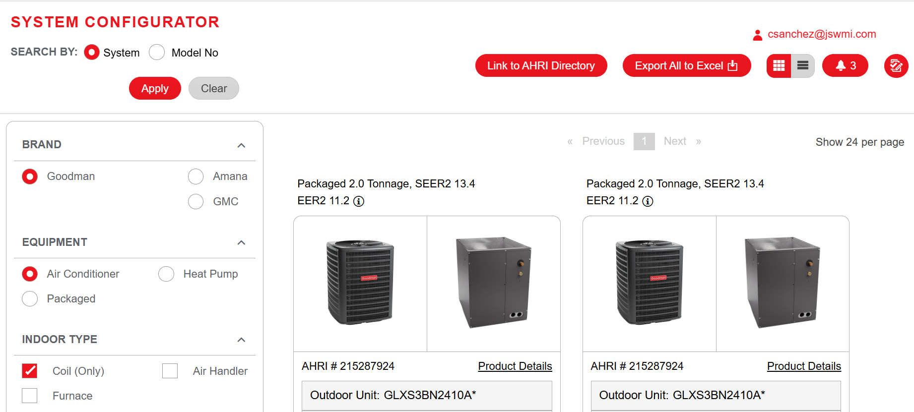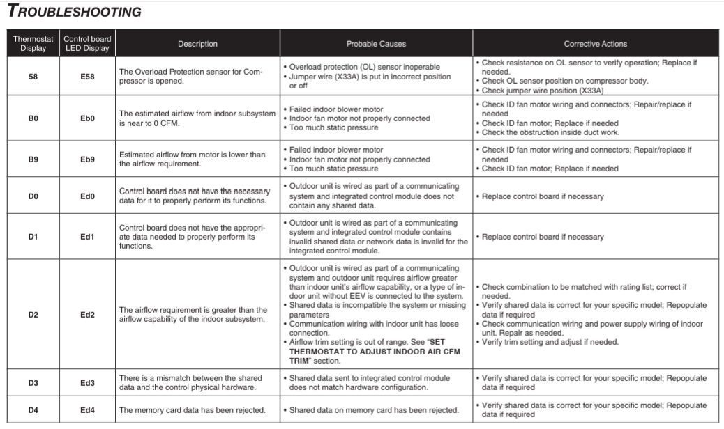 A Goodman D2 error fault or code is likely related to a system mismatch. The GTST wall control will still communicate with the equipment, but it will not allow it to run properly as it knows that is not a correct match up. Using Goodman's System Configurator as shown below, will help you determine what components are compatible. The DTA119 Equipment interface, will work in most, if not all applications where the air-handler or furnace is Non-Communicating.