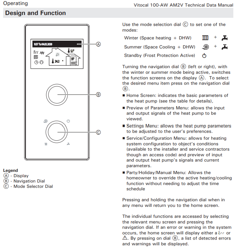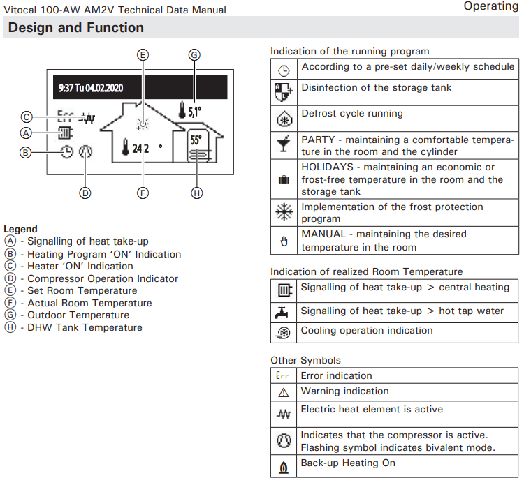 The Vitocal 100-AW AM2V heat pump is designed for heating/cooling of a building and heating domestic hot water.